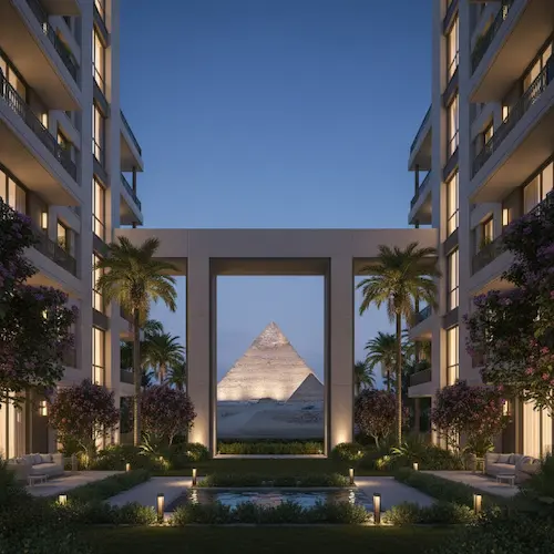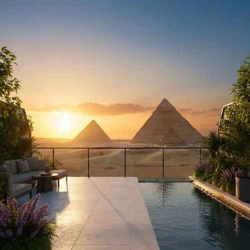 3. المستثمر الاجنبي: الموقع الفريد امام الاهرامات والطلب السياحي المتنامي يمنح المستثمرين فرصة تحقيق عائد استثماري ثابت وقيمة عقارية متصاعدة على المدى الطويل، سواء عبر التملك او الايجار الفندقي.