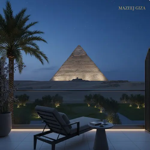 مع استخدام لغة معمارية مستوحاة من روح الجيزة لتوفير بيئة هادئة تجمع بين الخصوصية والرفاهية وجودة الحياة.
